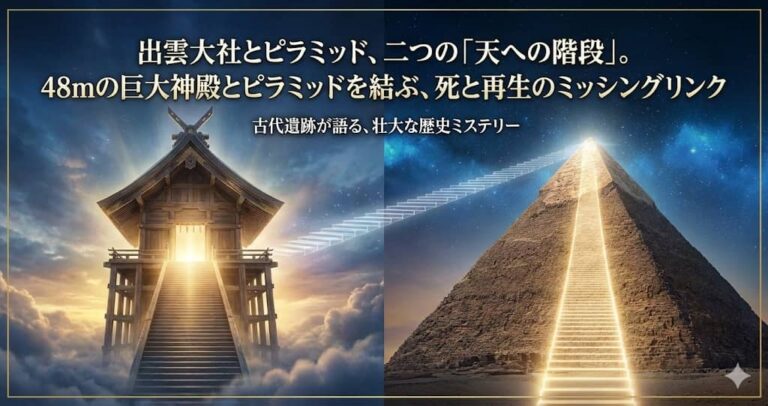 出雲大社の48m巨大神殿とエジプト・ピラミッドの共通点を建築・蛇信仰・太陽信仰から考察。死と再生を結ぶ古代の祈りを読み解…